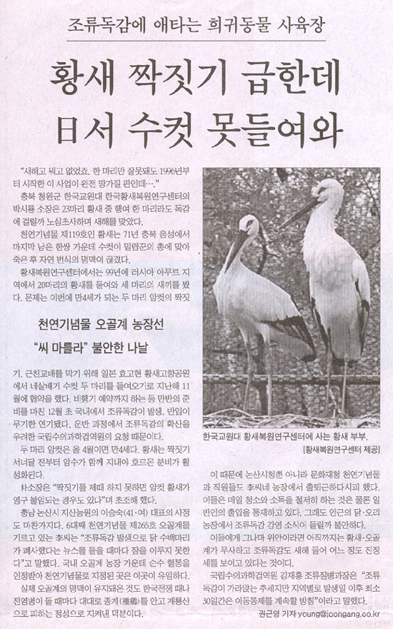 Áß¾ÓÀϺ¸(2004. 1. 5) Á¶·ùµ¶°¨¿¡ ¾ÖŸ´Â Èñ±Íµ¿¹° »çÀ°Àå